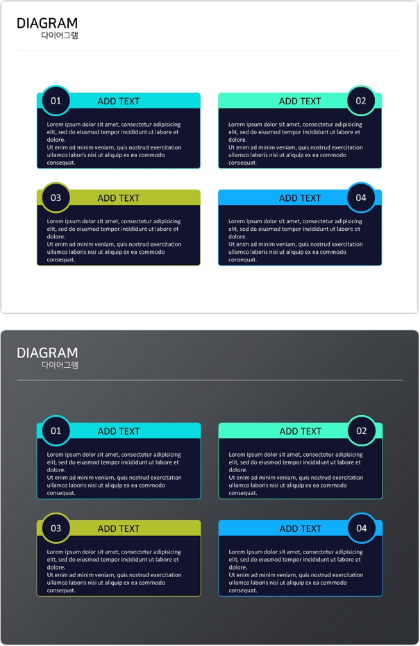 파워포인트 내용작성시 활용할 수 있는 다이어그램 템플릿입니다.
